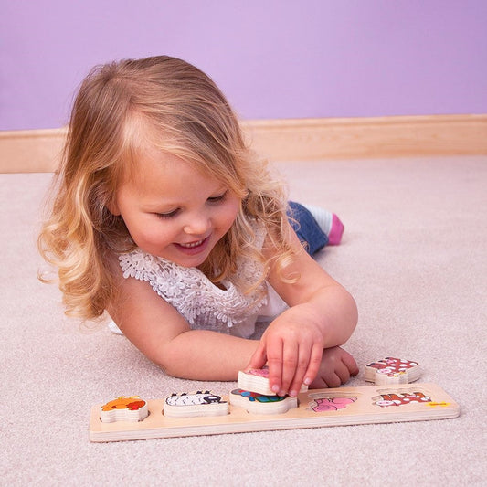 Bigjigs medinė formų dėlionė Ūkis (5 el.)