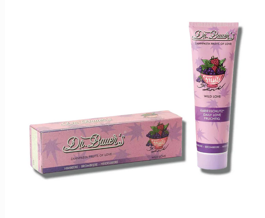 DR. BAUER’S FRUITS OF LOVE aviečių, gervuogių bei mėlynių skonio dantų pasta