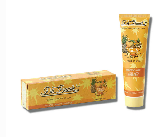 DR. BAUER’S FRUITS OF LOVE persikų, ananasų bei apelsinų skonio dantų pasta
