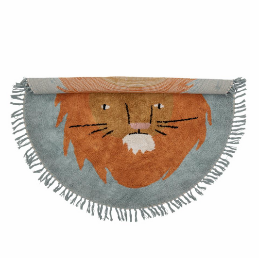 Leroy kilimas, apvalus, liūto galvos dizainas, medvilnė