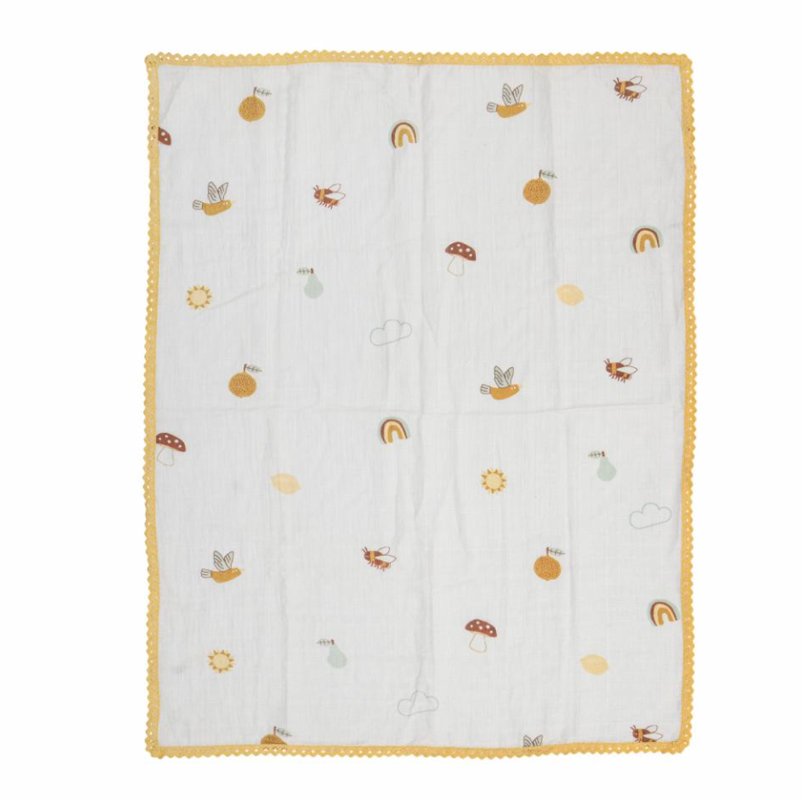 Agnes kūdikio antklodė – tai švelni ir lengva antklodė, idealiai tinkanti kūdikiui vežimėlyje ar vežimėlyje. Sukurta su meile, ji pasižymi žaviomis iliustracijomis, kurios atspindi pasaulį, o elegantiška geltona siuvinėta kraštinė prideda papildomą švelnumo ir detalių išraišką.