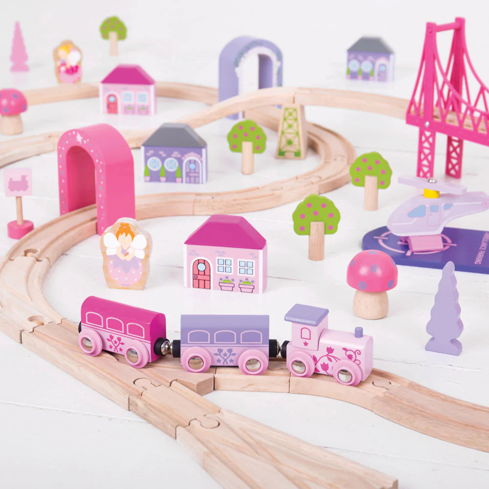 Bigjigs traukinukų trasa Fėjų miestas (75 el.)