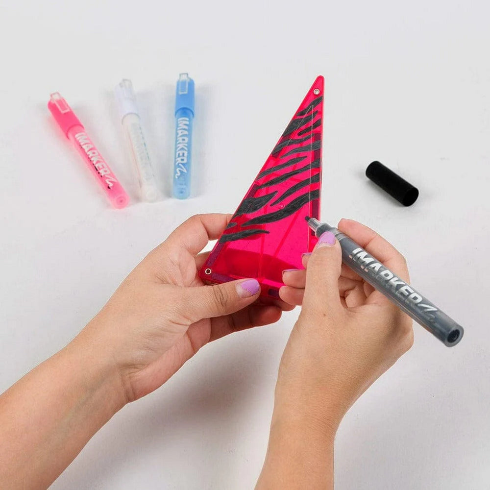- rinkinyje 4 markeriai: rausvas, baltas, mėlynas ir juodas;