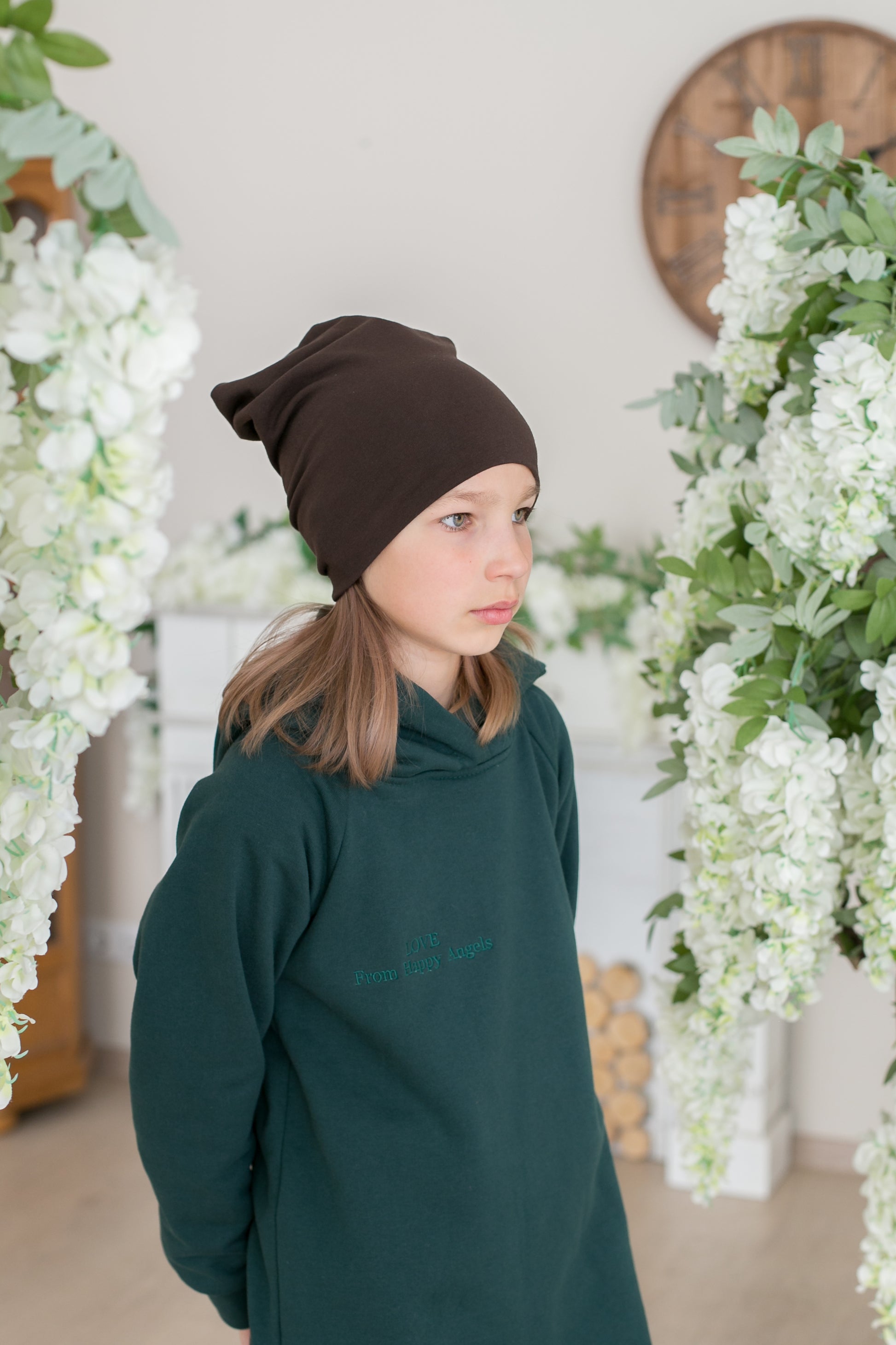 Kodėl verta rinktis šį komplektą? Švelnus, orui pralaidus audinys – patogu visą dieną. Elastinga – lengvai prisitaiko prie vaiko galvos ir kaklo. Puikiai tinka darželiui, pasivaikščiojimams ar žaidimams lauke.