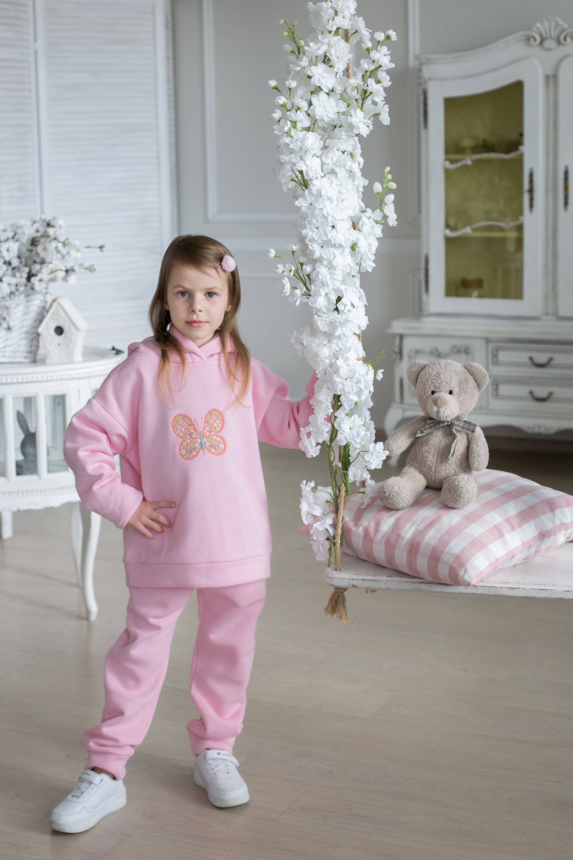Sudėtis: 95 % medvilnė, 5 % elastanas. Dviejų dalių komplektas – džemperis ir kelnės. Išskirtinis siuvinėtas paveikslėlis. Komplektas komfortiškas ir nevaržantis judesių. Su švelniu pūkeliu viduje. Galimos įvairios spalvos. Priežiūra: galima skalbti skalbimo mašinoje ir džiovinti džiovyklėje.