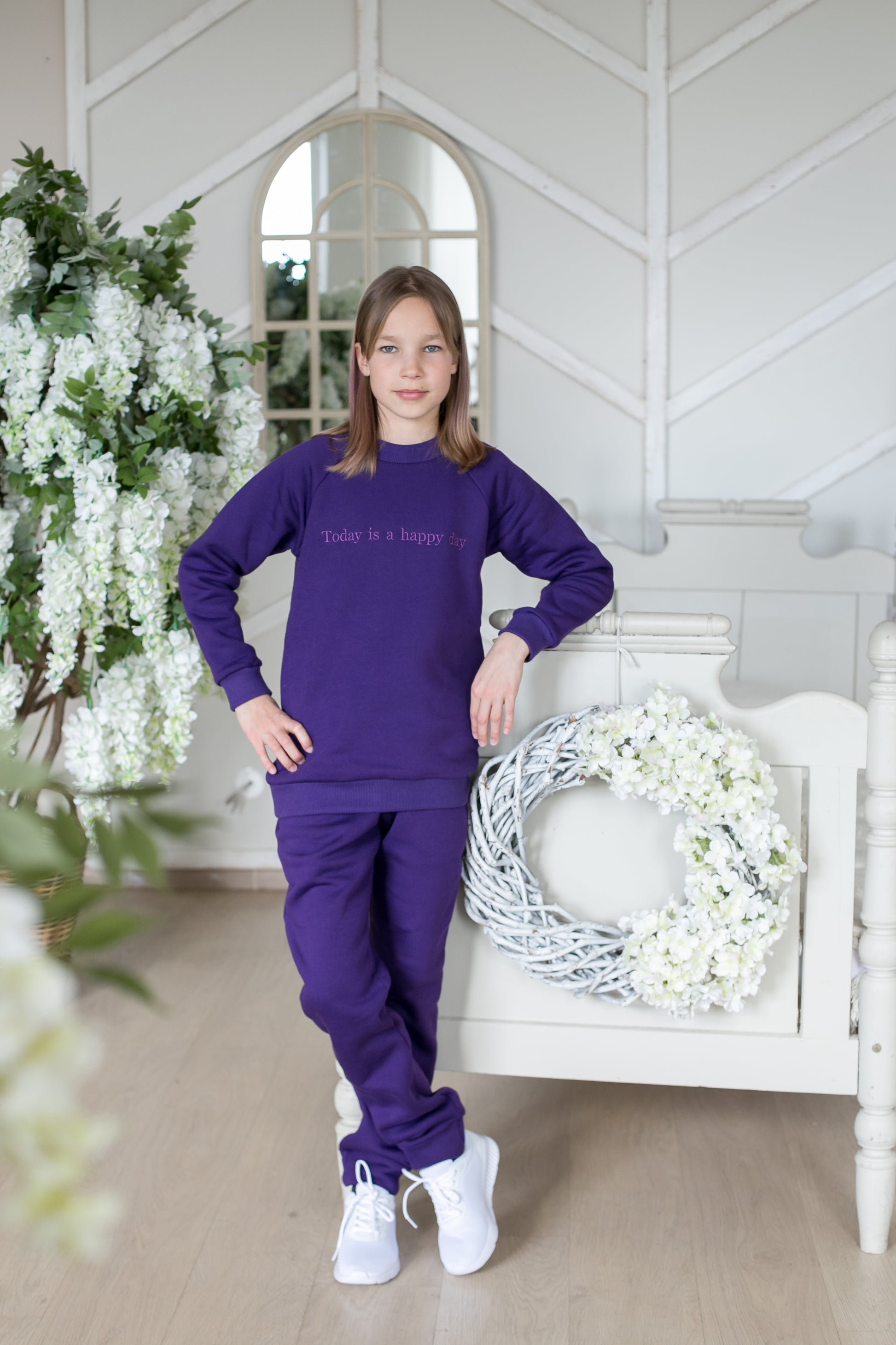 Sudėtis: 95 % medvilnė, 5 % elastanas. Dviejų dalių komplektas – džemperis ir kelnės. Išskirtinis siuvinėtas užrašas. Komplektas komfortiškas ir nevaržantis judesių. Su švelniu pūkeliu viduje. Galimos įvairios spalvos. Priežiūra: galima skalbti skalbimo mašinoje ir džiovinti džiovyklėje.