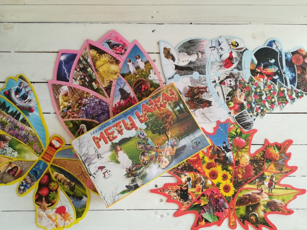 Iš viso 64 detalės. 4 dėlionės (4 metų laikai).