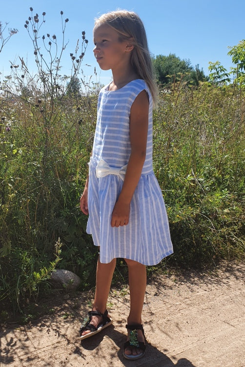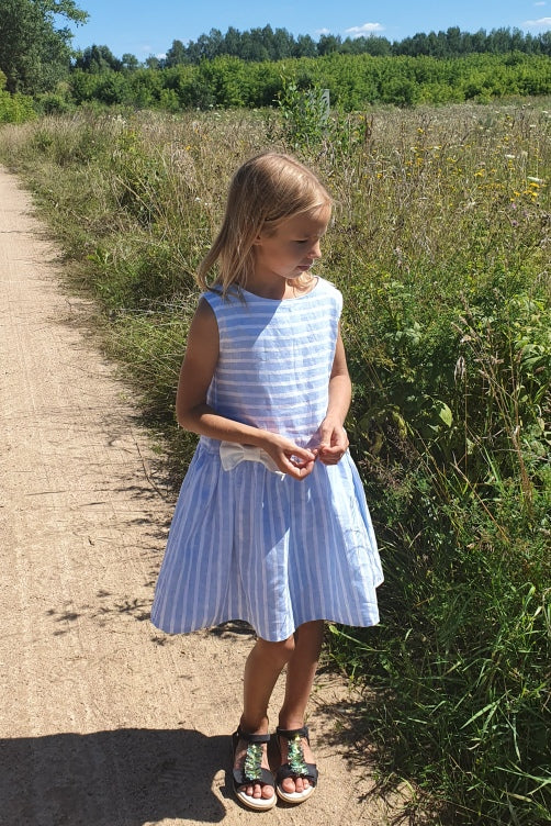 Ieškote suknelės, kuri būtų ir graži, ir patogi? Ši žavinga suknelė kaip tik tai! Pagaminta iš minkštinto lino (100 % linas), todėl nevaržo judesių net ir šėlstant visą dieną. Suknelė – kaip apkabinimas: švelni, jauki ir labai miela!