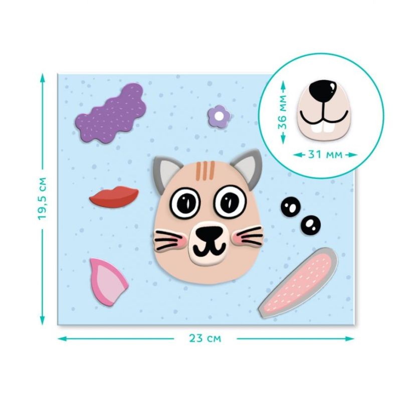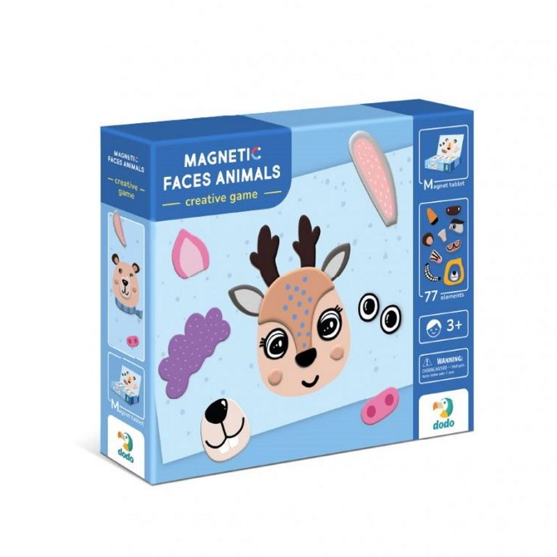 MON Magnetukų rinkinys Gyvūnai (77 el.). Rinkinyje rasite: 19,5x23 cm. lentą su veido konturu bei net 77 magnetukus (akytes, lupytes, nosytes ir t.t.).