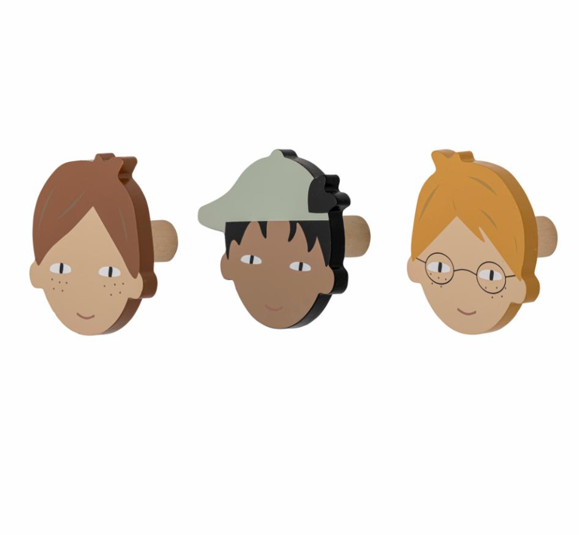 Simson kabliukai – dekoratyvus trijų kabliukų rinkinys, puikiai tinkantis vaikų kambariui. Kiekvienas kabliukas nudažytas skirtingu veiduku, suteikiant kambariui žaismingumo ir išskirtinumo. Juos galima naudoti kartu arba atskirai – tiek kaip sieninius kabliukus, tiek kaip rankenėles komodai ar spintai. Supakuoti dailioje dovanų dėžutėje.