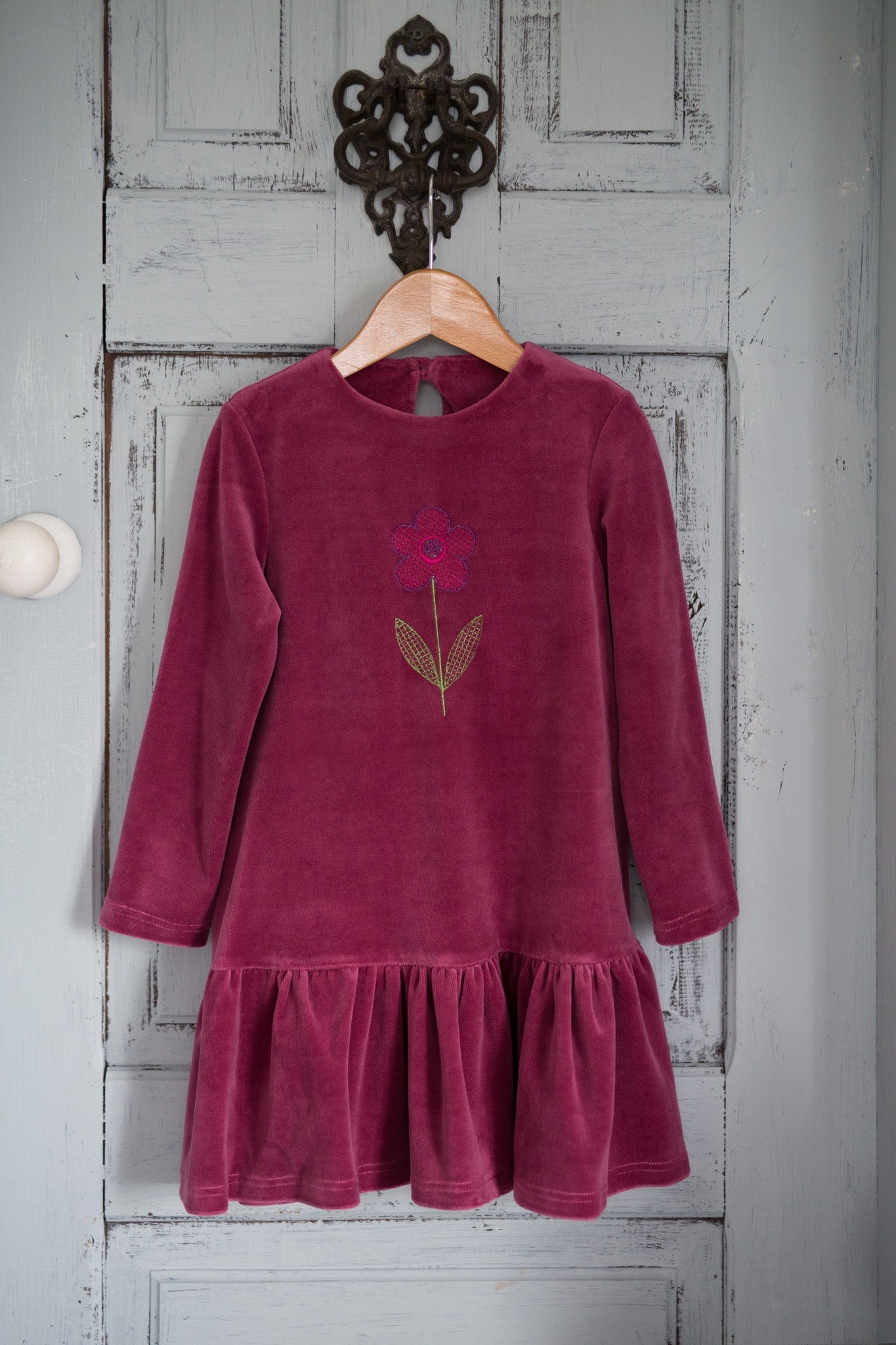 Siuvinėta veliūrinė suknelė "Gėlytė" (Įvairių spalvų)